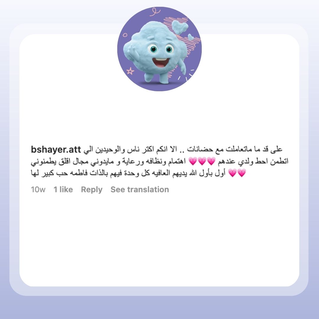 نعدك أن نبقي صغيرك بأمان عندما يكون في رعايتنا، مساحة غيمة مهيئة بأعلى درجات الأمان و السلامة